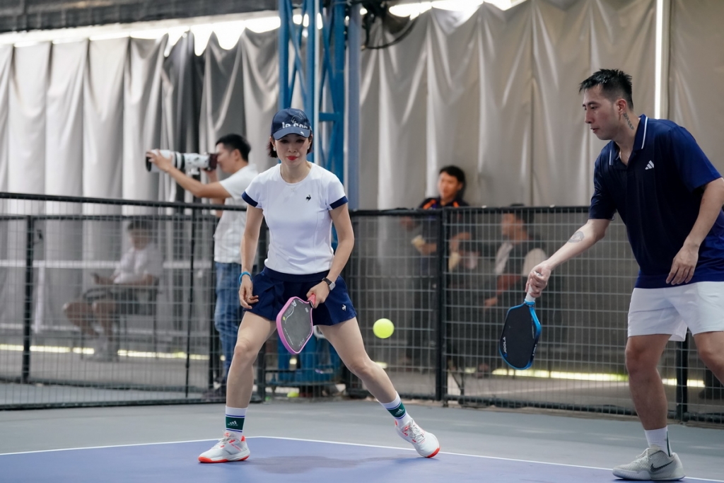 Một trong những cặp được chú ý nhất là ca sĩ Minh Hằng bắt cặp cùng vận động viên Lý Hoàng Nam – ngôi sao quần vợt số 1 Việt Nam, hiện nằm trong Top 20 thế giới trên bảng xếp hạng Pickleball chuyên nghiệp PPA Tour. Sự kết hợp giữa năng lượng nghệ sĩ và bản lĩnh thể thao giúp họ trở thành tâm điểm của giải.